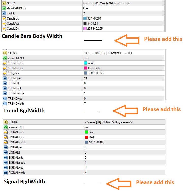 1) Please Add Param / Option : Candle Bars Body Width : ______