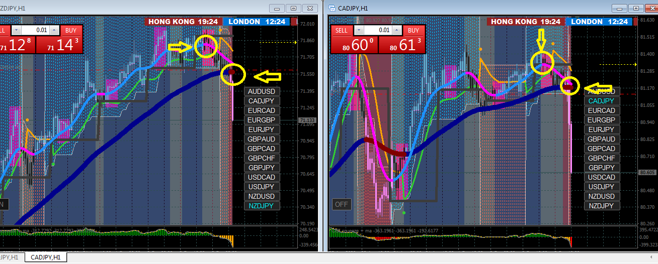 2. if the second average and candles are changing color