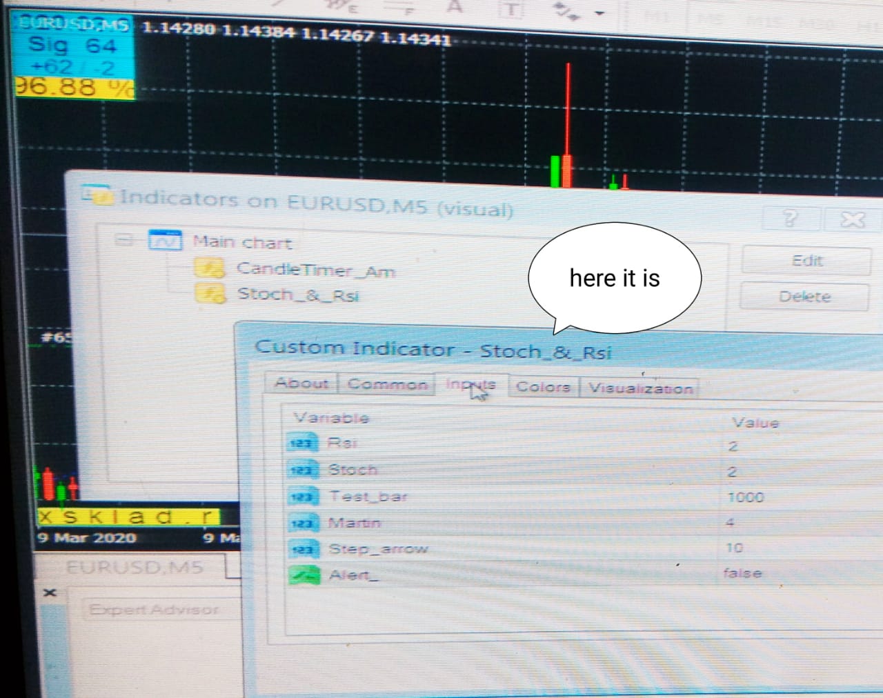 I'm on TF M-5, I installed the rsi + ma crosses 1.06 (mtf + alerts + arrows) MTF indicator that you created.