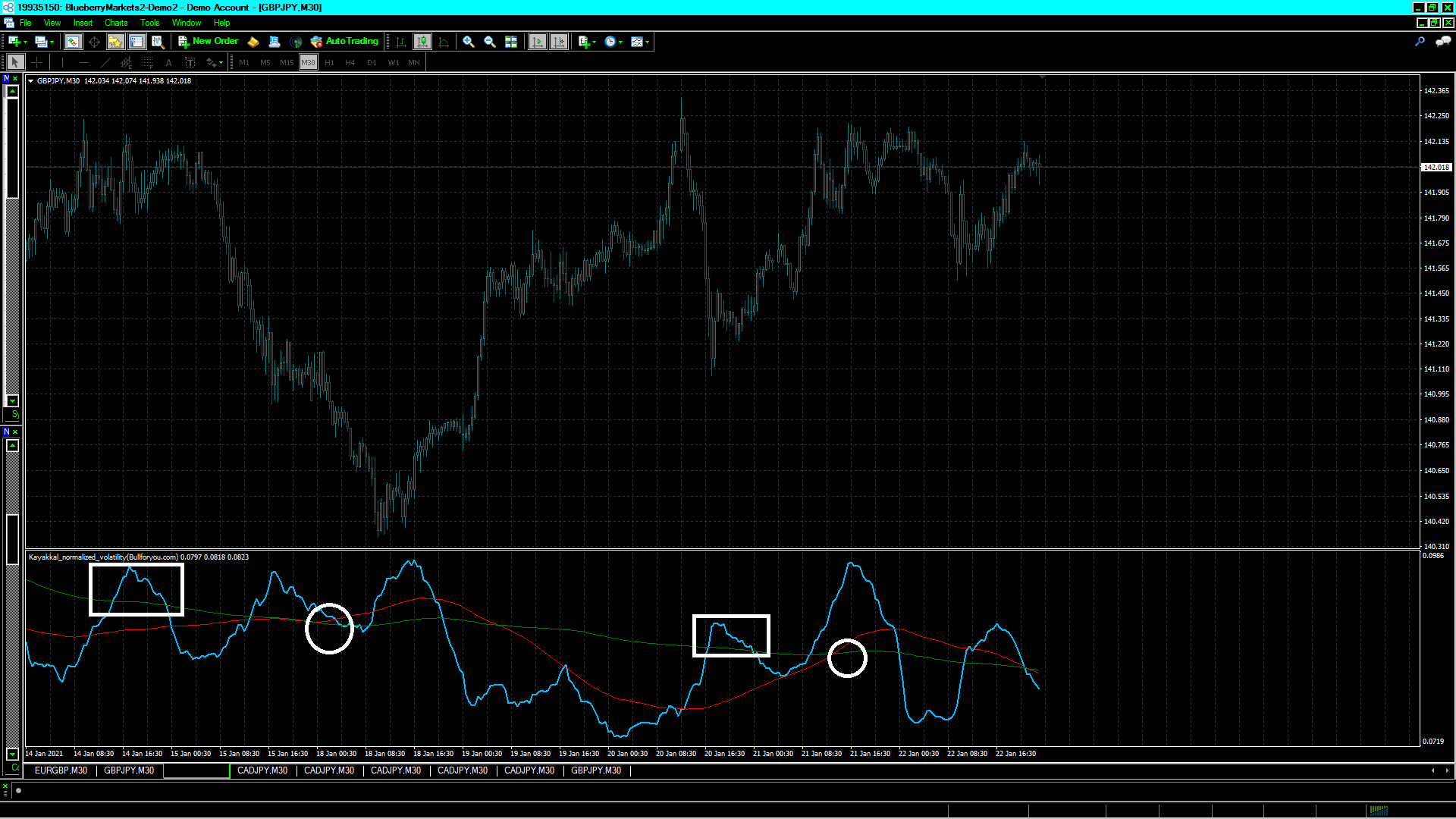Works best on 5-minute chart. Could work on 30-minute chart or above.