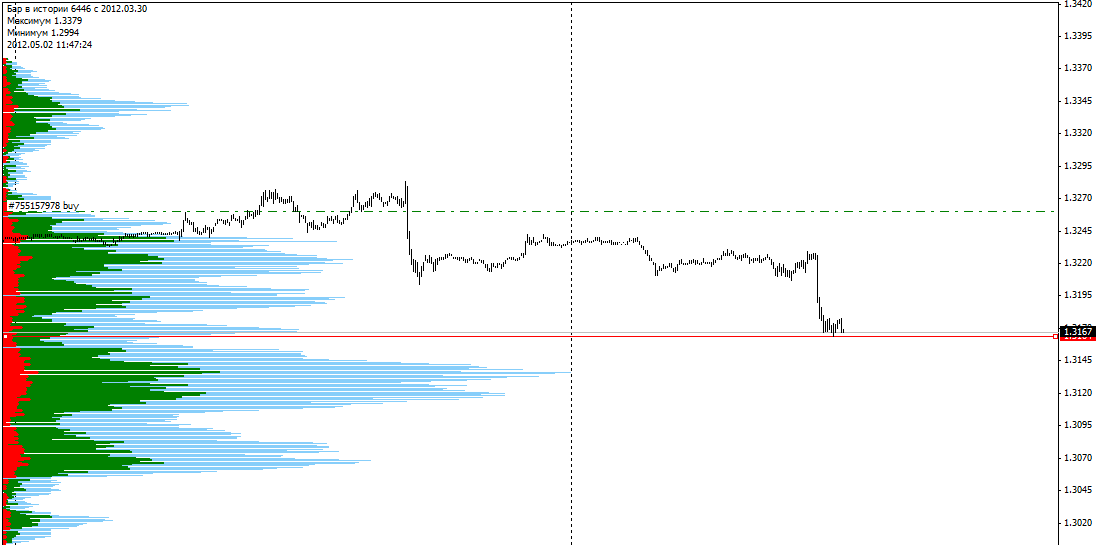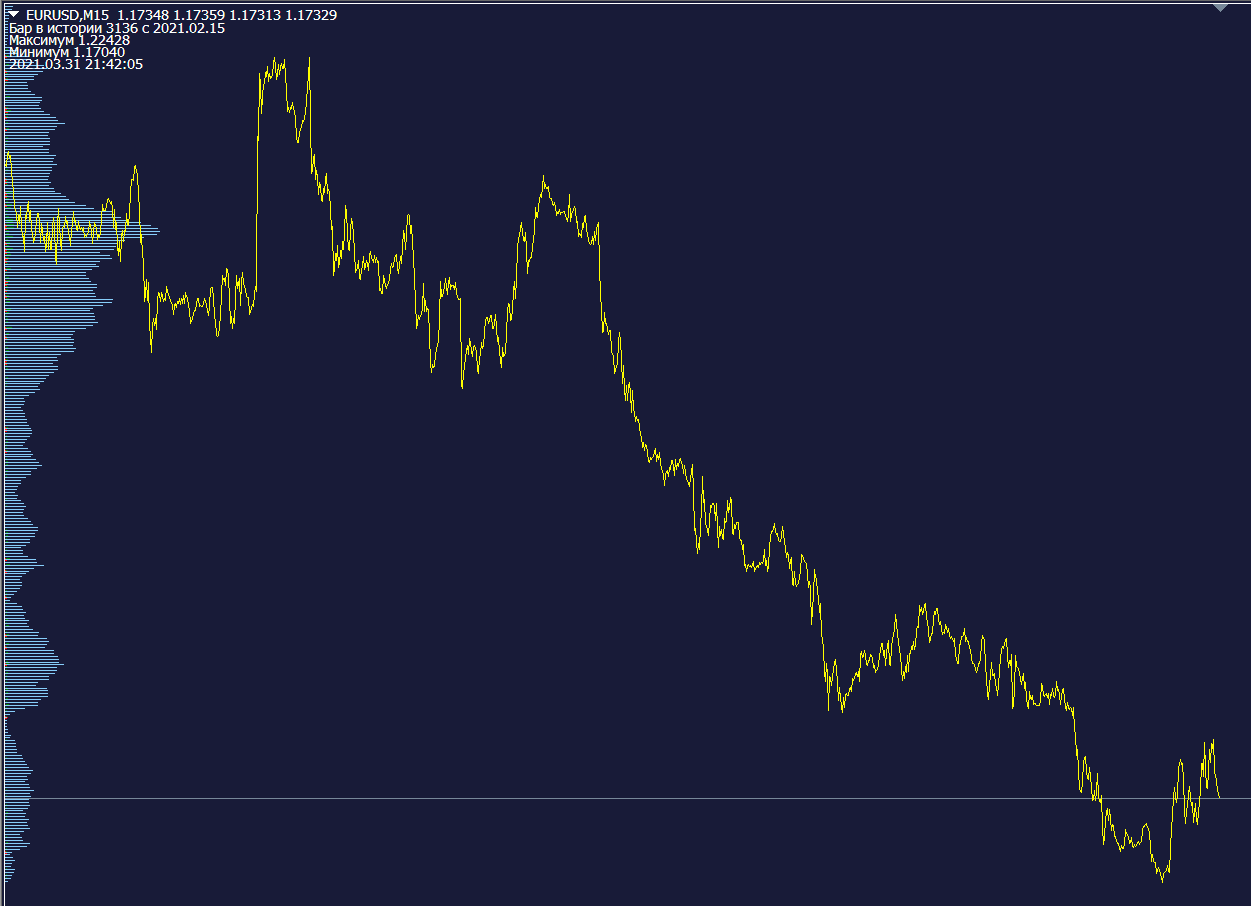 The indicator shows the levels where the price was during the time period since TimeStart, plus the number of fractals at this price (marked in red) and the number of extreme points (Hight Low) at this price (marked in green)