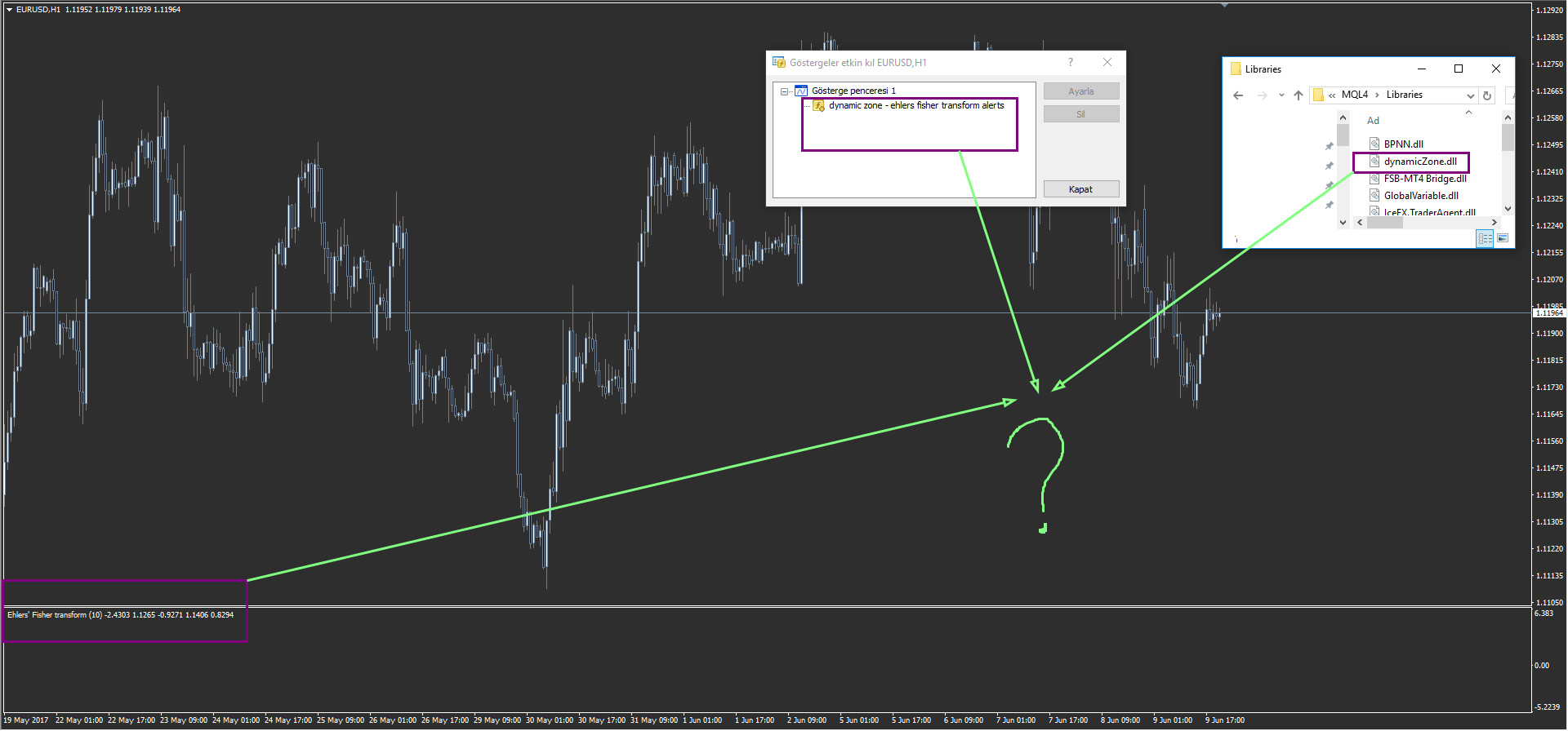 attach ehlers indicator on chart but I dont see anything. I use 1045 mt4 version