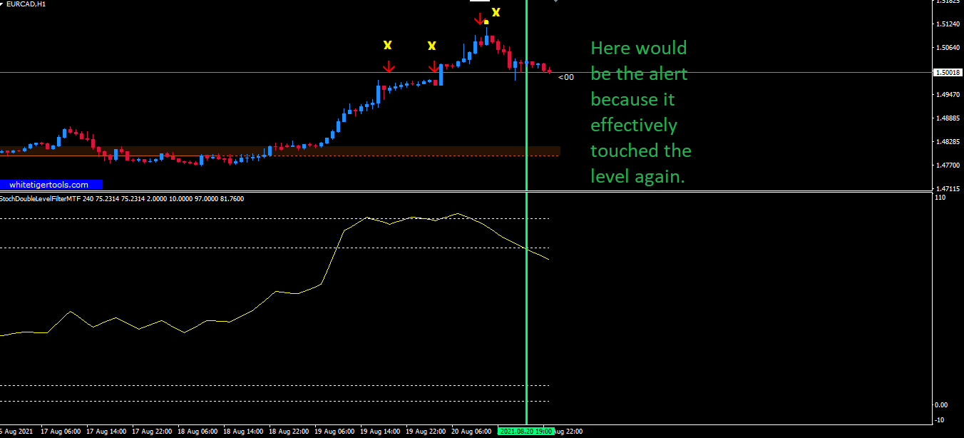 but if it only touches the 10 level and not the 15 level it will not generate an alert and an arrow.