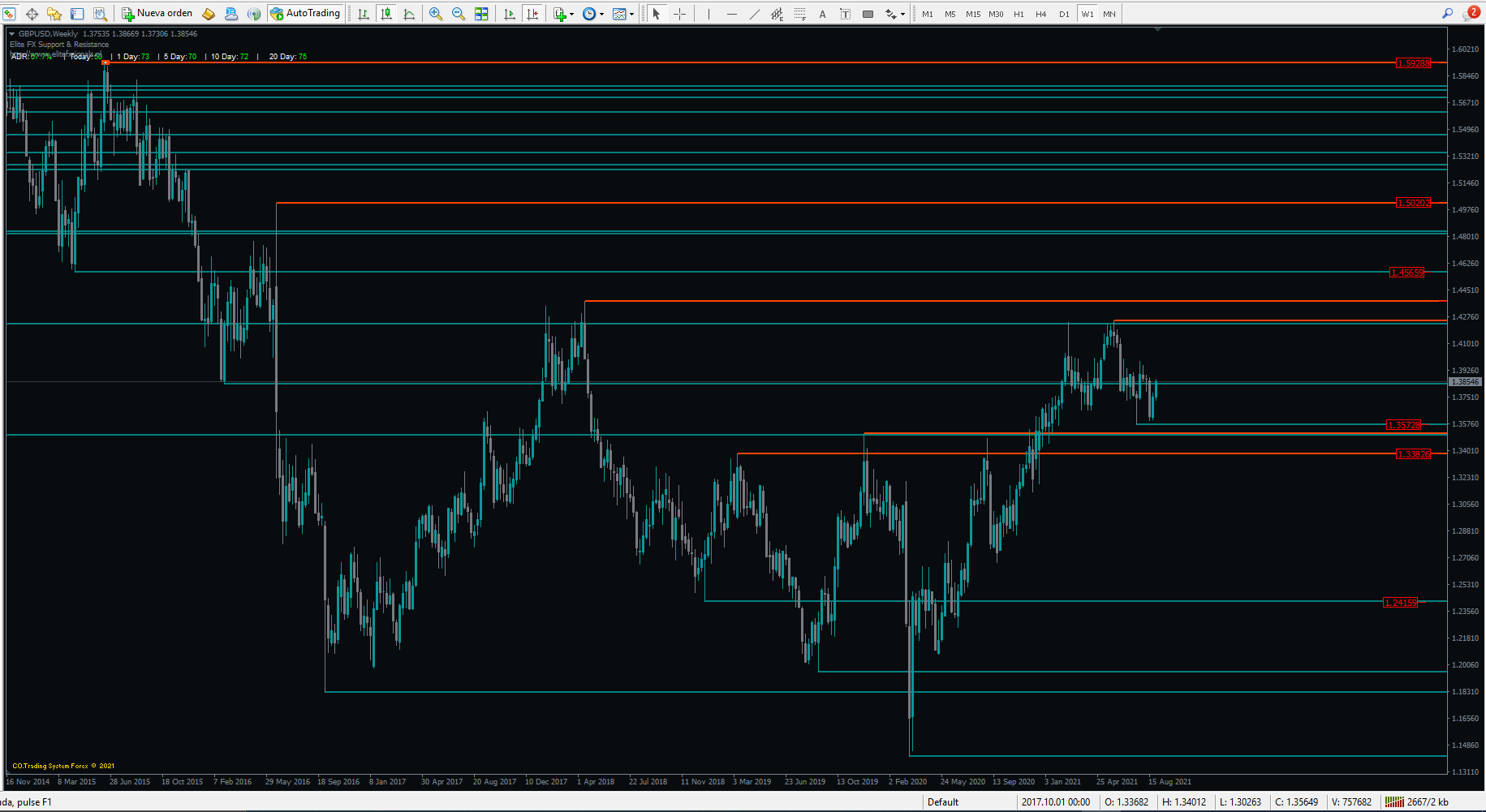 the indicator that sent marks supports and resistances historical daily weekly or monthly, I only need that the supports and resistances differ in color and that the price of each support and resistance is displayed in the sidebar