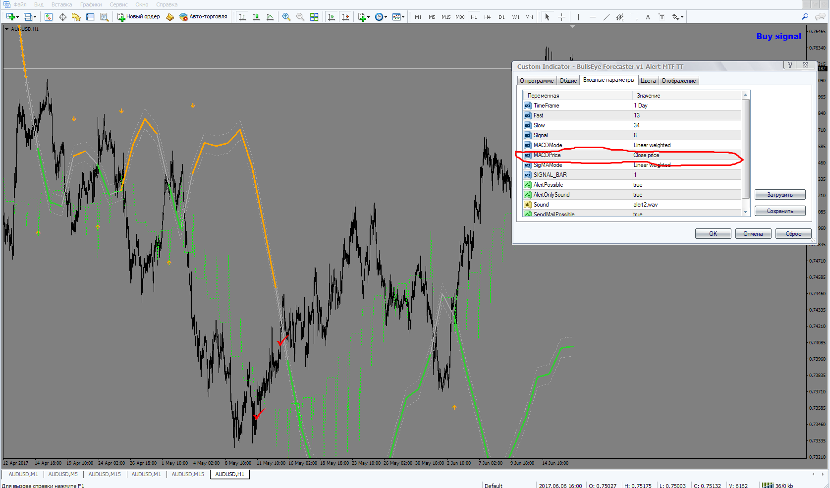 Intrest 1 wrote: Sat Jun 17, 2017 10:13 pm Thank you. They have MTF sometimes the signals in different places at the same settings. Please add the option Priсe. May be this the reason of the difference signals