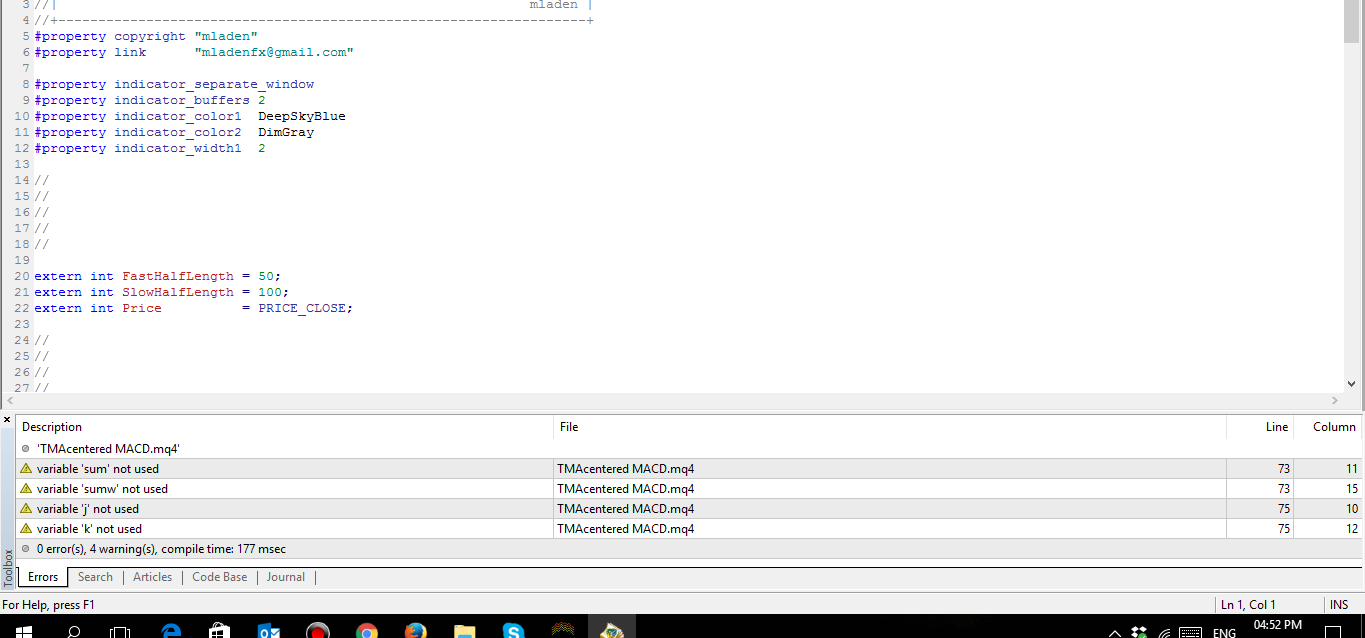 As far as those errors : those are warnings not errors and all are benign - they are not influencing the work of the indicator in any way