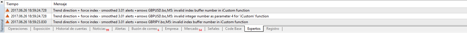 I keep doing tests with the indicator and these are the messages that I receive in the terminal of my mt4. Could you please take a closer look.
