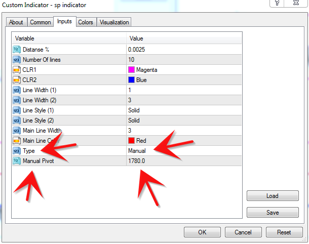 And in the settings of this indicator, you can set a number so that the lines are drawn with a distance from this number (manual pivot).