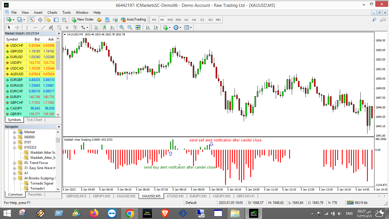 or when the indicator turn from red to green send buy alert and when the indicator turn from green to red send sell alert ..