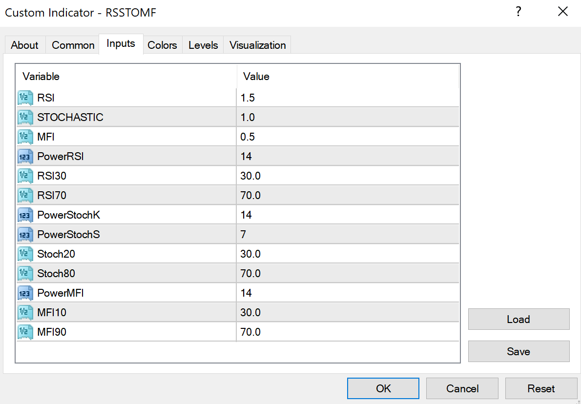 Here are the settings I attempted to experiment with on a US30 Renko chart, where each box is worth 5 points (ex. 30,000 -> 30,005):