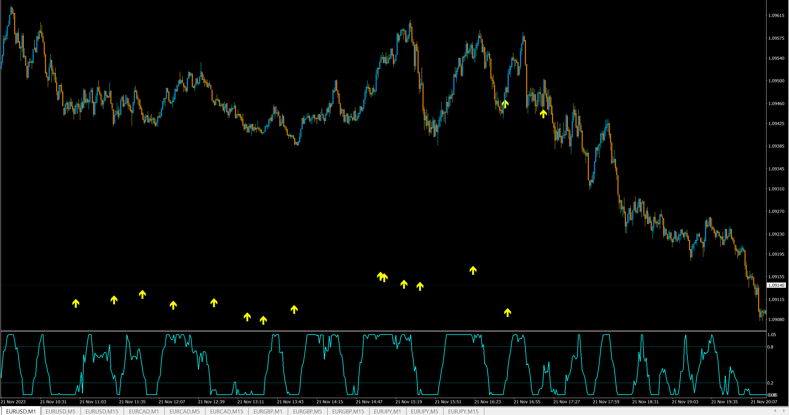 the thing is that it weitdly crashes some times and draw arrows randomly across the chart, see picture 1, even ignoring the MA's filters, the UP arrows shouldn't appear since the laguerre need to cross lvl 0.20.
