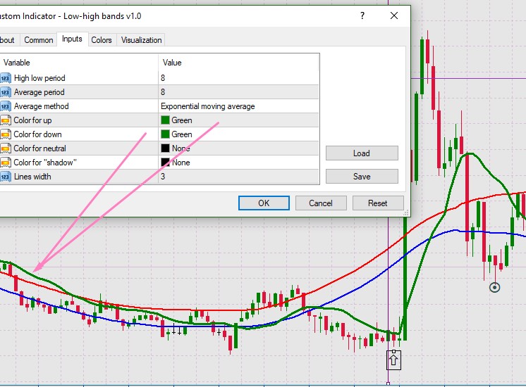 if green line from low high bands indicator ?