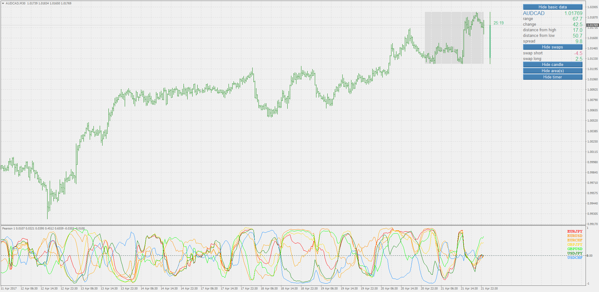 760Since that is Pearson correlation, you could start with using this indicator - simply to check those assumptions that the quoted symbols will go into opposite wayskatana wrote: Sat Apr 22, 2017 10:18 pm Hi all,