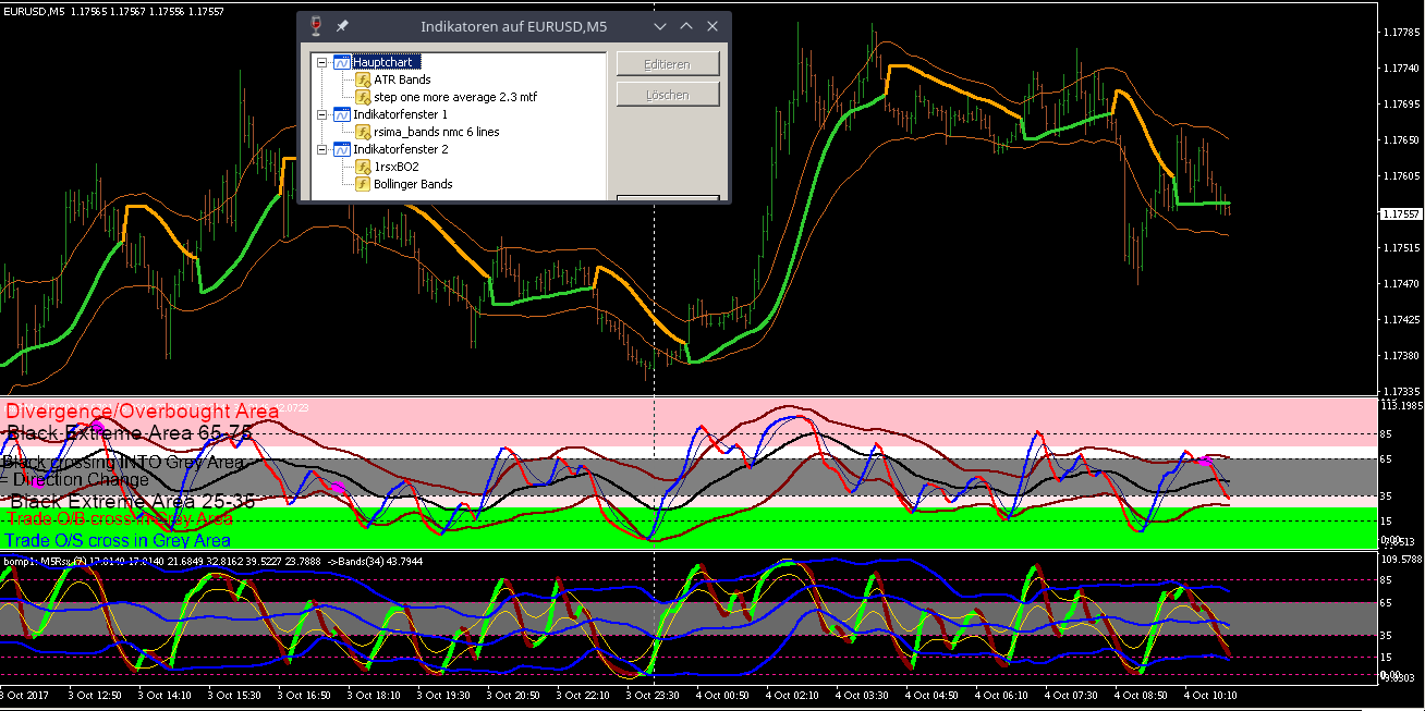 Here are the RSX as Traders Dynamic Index (TDI) with help from teamtrader and wulong. Please compare different self-made TDI versions with the more trending RSX instead of RSI. The thin yellow bands is the only repainting part of mladens indicator. The indicators by themselves don't show this picture. Use the template please.