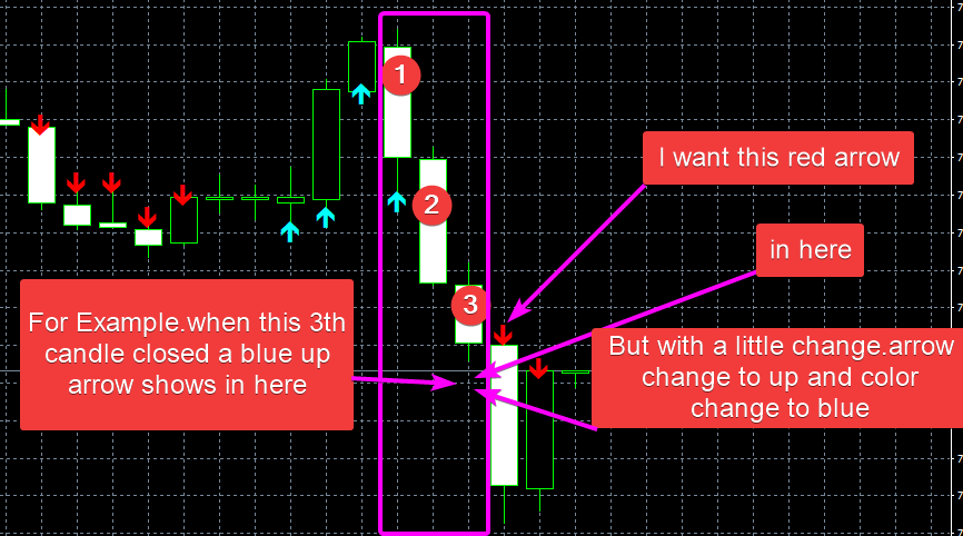 pls move arrows to top of candle in bulish candles and face arrows down