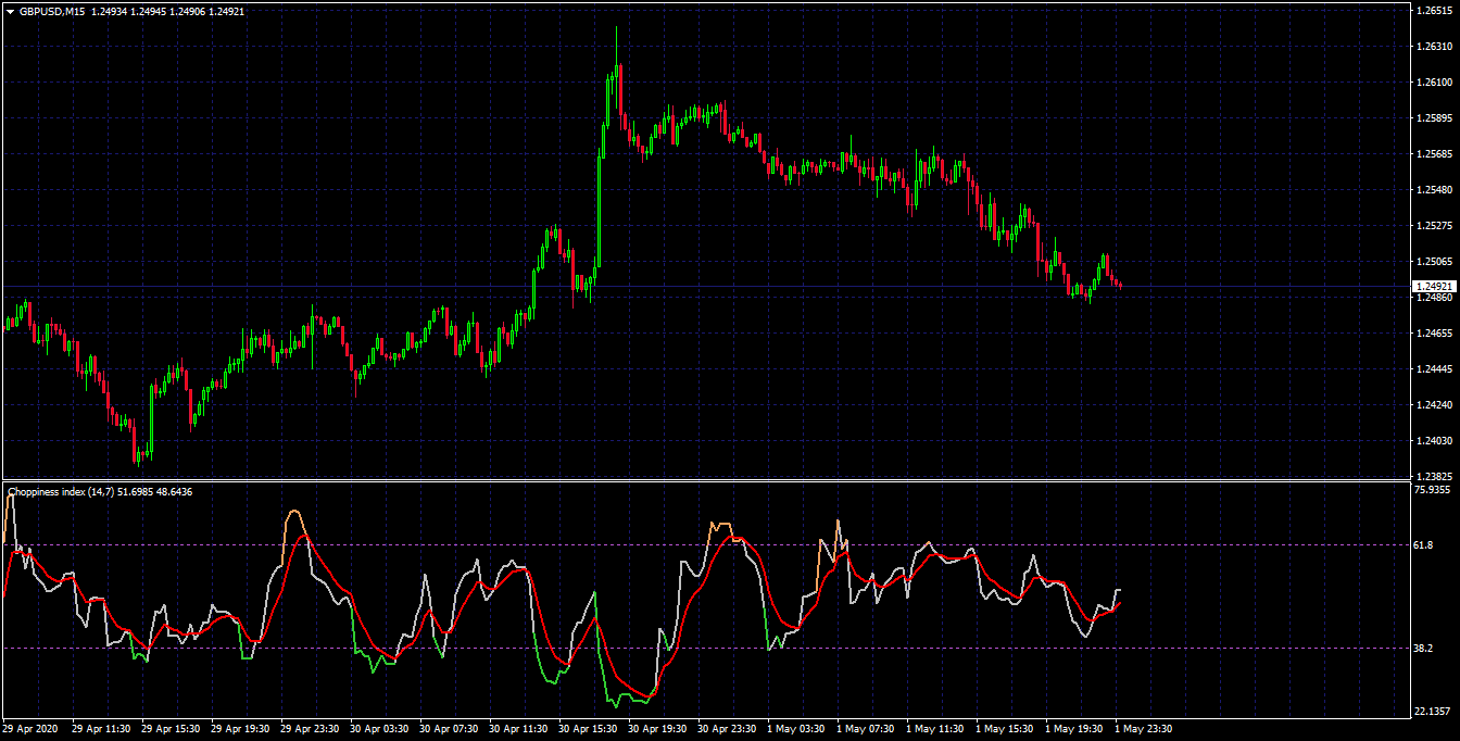 if you change the MA on the choppiness index (i. e. from SMA to EMA) the MA changes into a vertical line at the bottom of the subwindow.