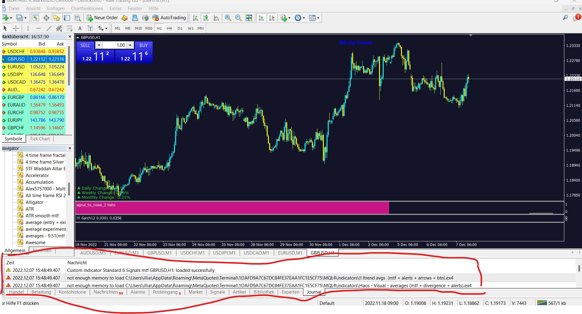 Since a few minutes I have the problem that when I open a new chart, most of the indicators are not loaded. The error message shown in the picture appears in the journal. Even a reinstallation of the MT4 has not changed anything. I have a completely new laptop with 16GB memory and also on my hard drive are still more than 200GB free. Do you have any idea what this could be?