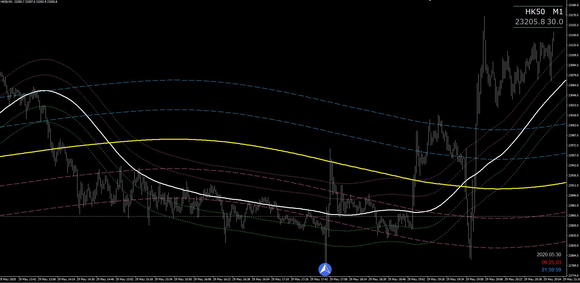 The green/magenta lines is the trendenvelopes indicator.....if someone might find it a useful additon.