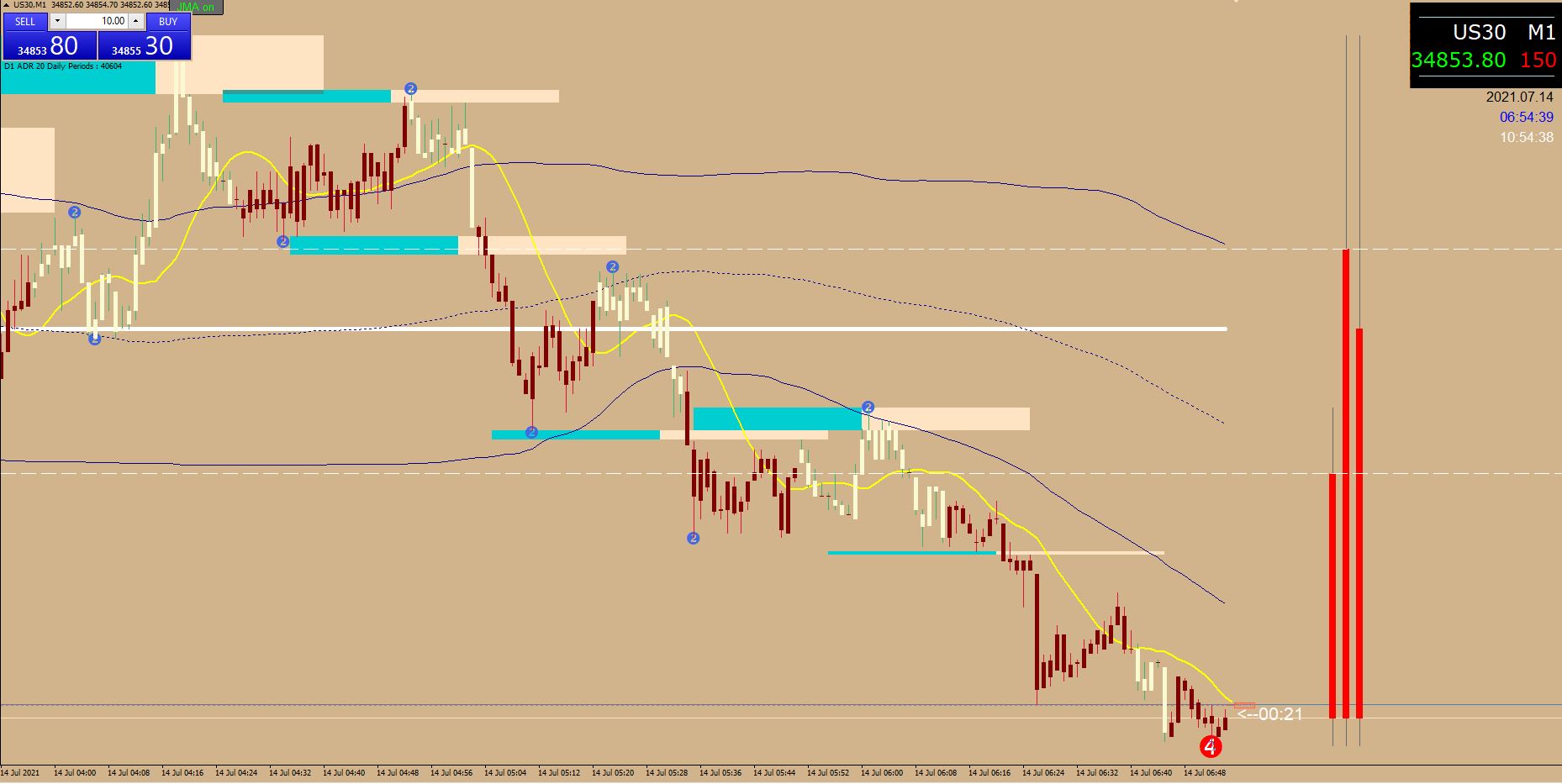 Below on the US30 this morning, even though the Asian Session is often pretty slow. Set the TZ to next higher TF. There's a lot more that could be done if it had an ID so more than on instance could be used. I hope mrtools might find a solution.