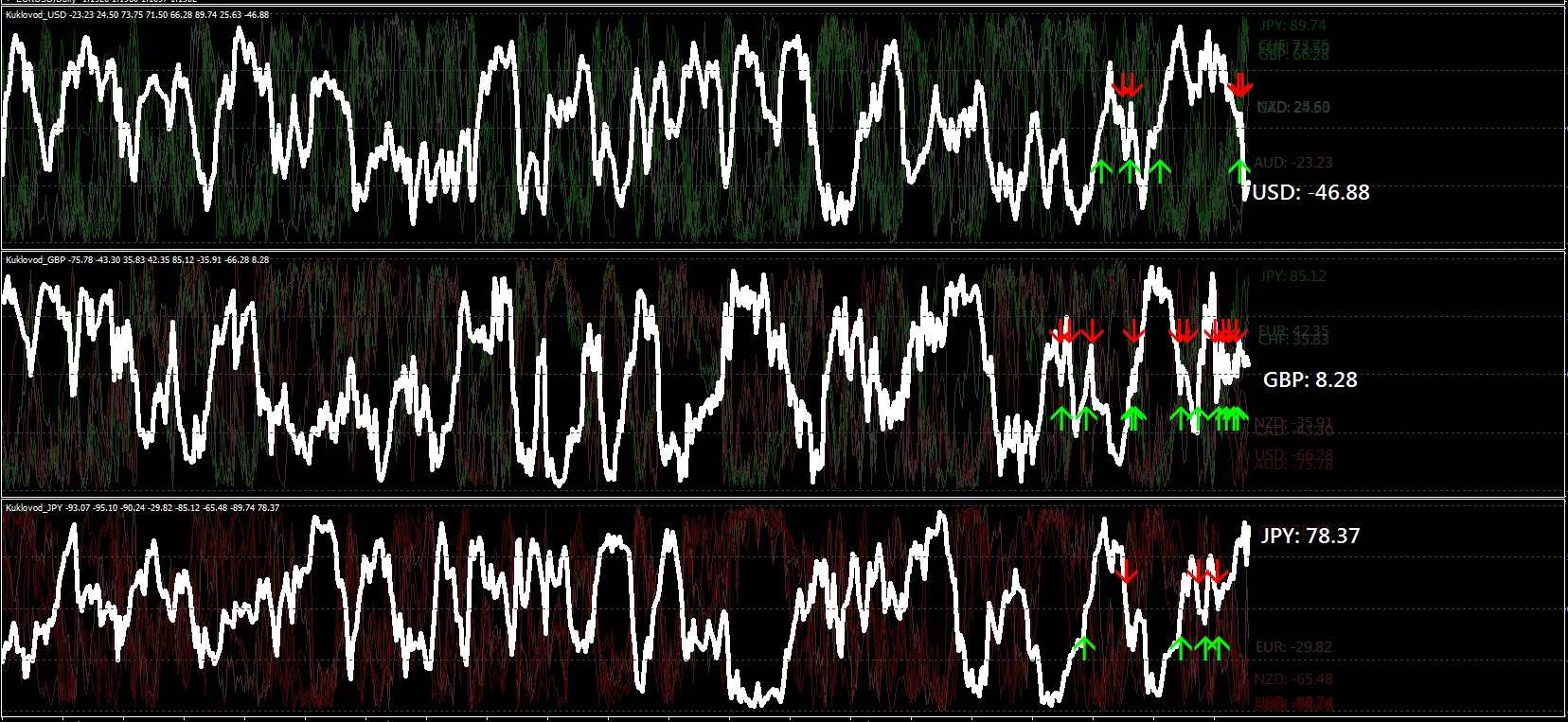 3.What to buy / what to sell for each currency group, see below. Also note that each basket is its own indicator. The templates below.