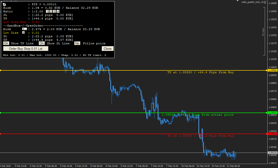 I guess for the Trailing module; the SL or TP buttons can be selected to either trail the stop loss or take profit. In that example, trailing starts when position is 150 pips in profit and SL is moved further for every additional 5 pips gain?