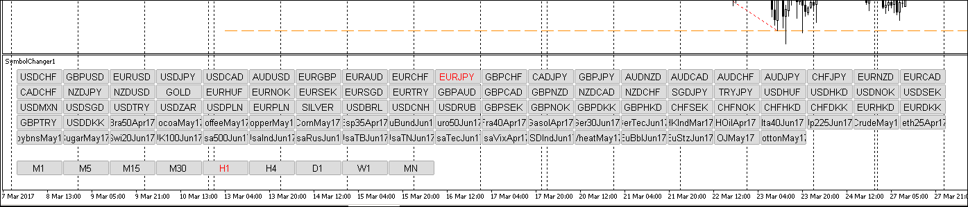 Notes:Suffix - 1: For platforms that use variants like EURUSDSB, EURUSD_uk etc., the user will have to enter the added suffix (case sensitive - examples: SB, _uk) in the suffix section in the Indicator Inputs Tab.Suffix - 2: Future symbols such as Usa500Dec13 or SoybnsJan14 should be added to the Indicator as complete names (case sensitive - examples: Usa500Dec13, SoybnsJan14) in the Inputs sections marked - SPARE. Do not add these to the suffix section.Any Symbol can be changed from the Indicator Inputs tab.Additional symbols can be added via the Inputs Tab by changing SPARE to the required symbol. Note: if a suffix has been added to the suffix section of the Indicator Input Tab do not include the suffix as part of the added symbol name because the suffix will duplicated - example: EURUSD_uk_uk.Note: When the indicator is attached to the chart or MT4 Terminal opened a first change of symbol requires two clicks and one click thereafter. The code is minimal and repetitive but I have not been able find a solution. The developer of the GUI files has not responded to a number of inquiries.