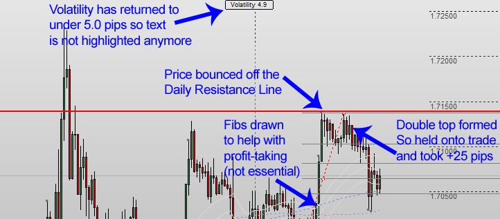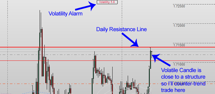 Here's an example of a live trade taken by using the Volatility Alarm: