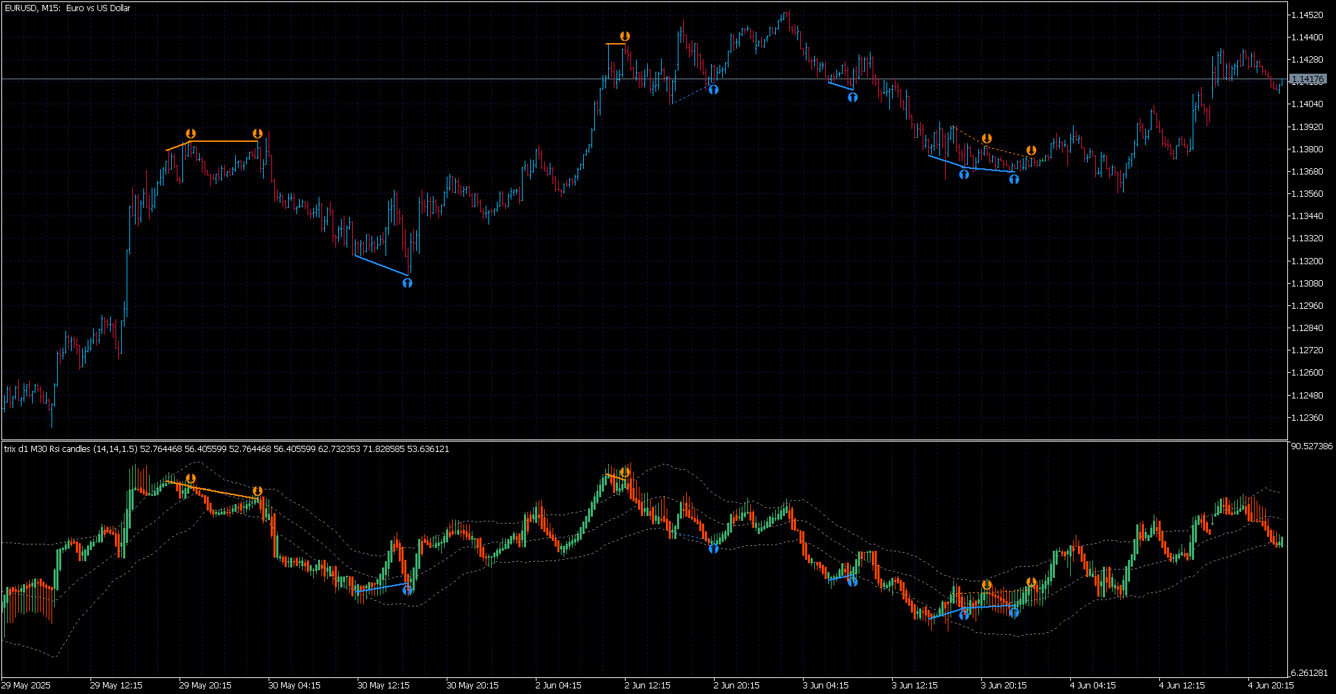 Is it (mtf) available in mt4?mrtools wrote: Wed Jun 04, 2025 8:07 pm It's a Rsi, used the Trix candles as a mtf template and forgot to change the name. Please redownload should be correct now, thanks for bringing it up