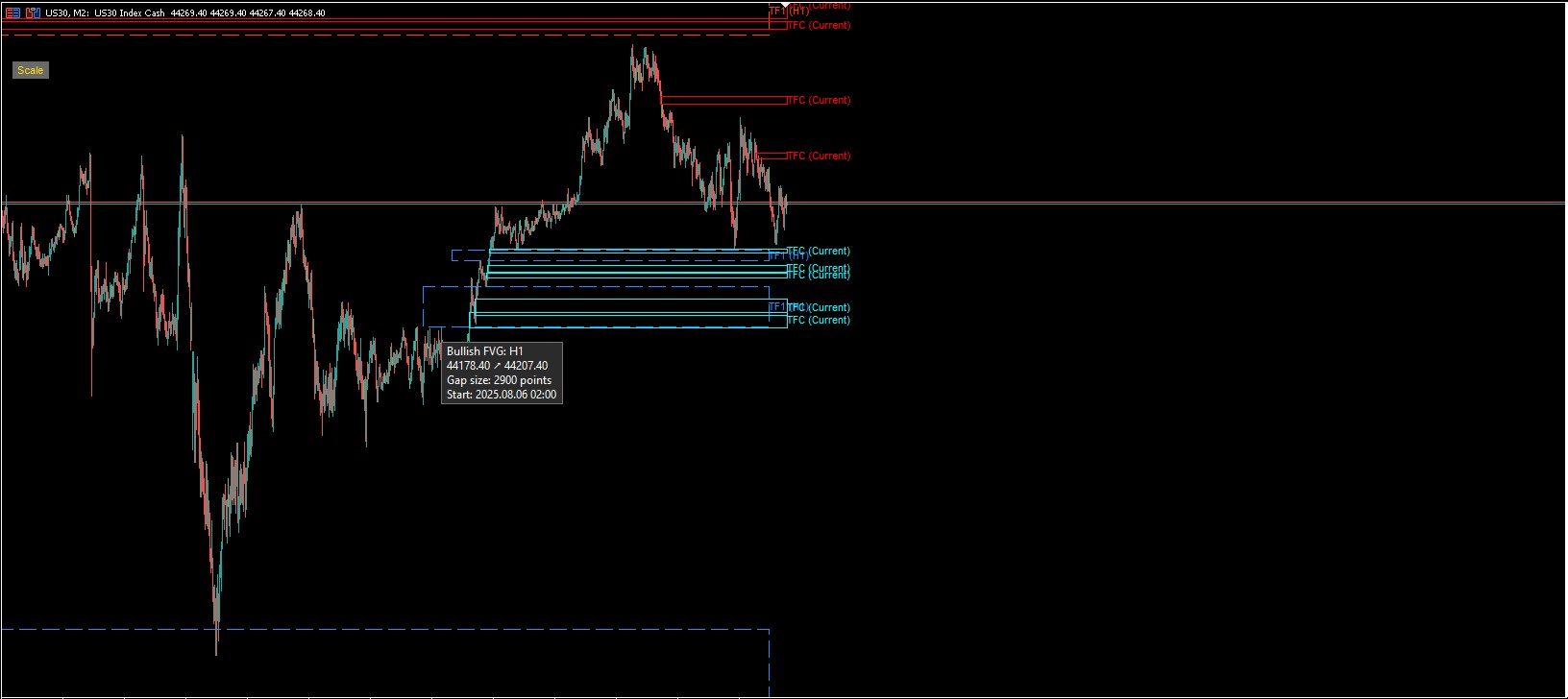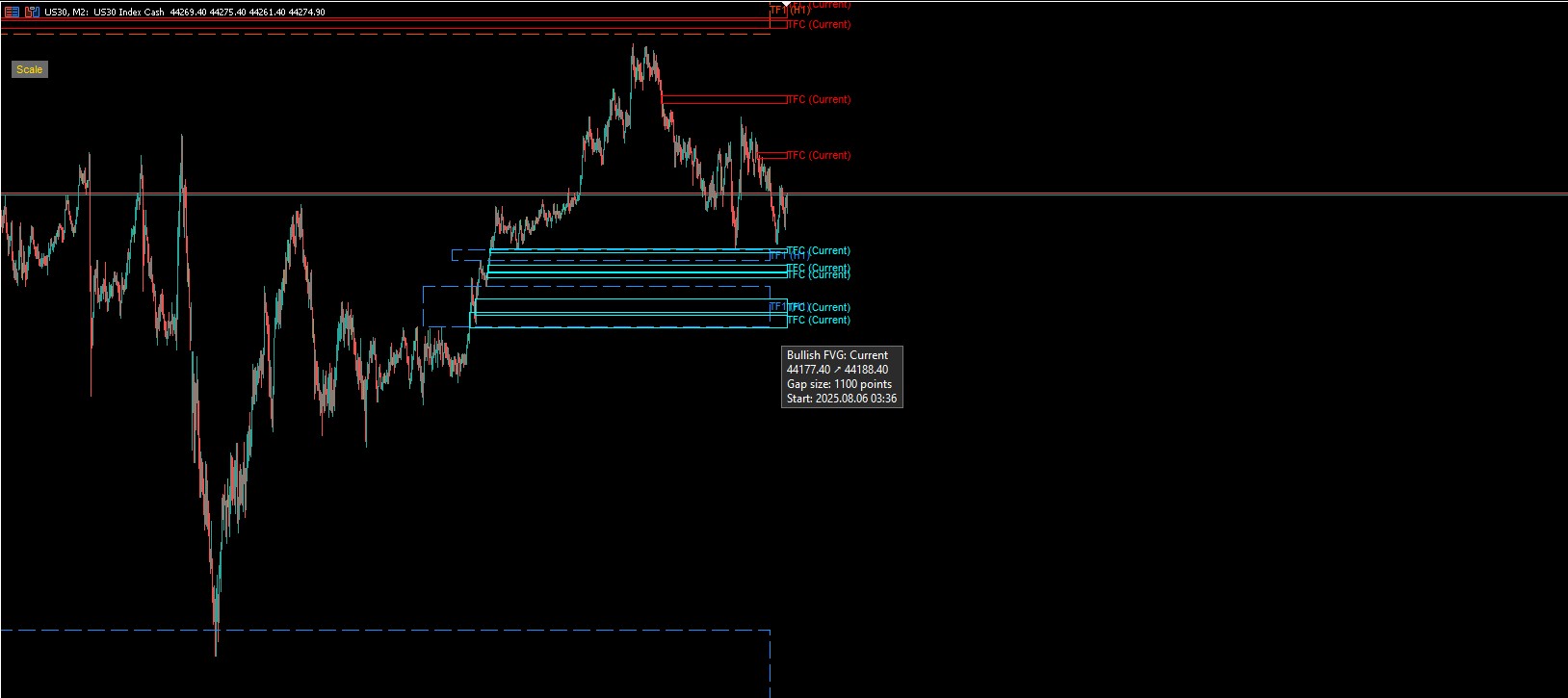 Today, I’m introducing a premium-quality indicator: the Fair Value Gap in multi-timeframe mode, featuring two timeframes and, most importantly, a tooltip function that displays details when hovering over the object with the mouse cursor. It works by placing the mouse cursor over the outline.