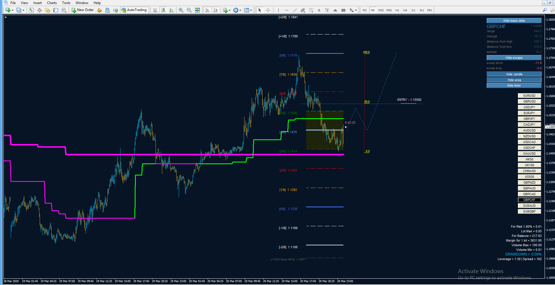 Furthermore, MM lines changed position and the level of 2/8 became 0/8 indicating a shift and possible change in the market conditions.sizabici wrote: Fri Mar 27, 2020 1:51 pm USDCHF M5 - 27.03