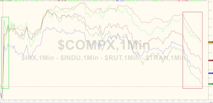 With cash markets quickly erasing gains as Europe closes...
