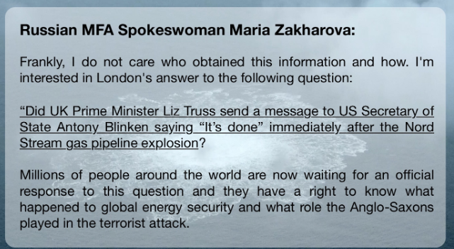 Ogee wrote: Wed Nov 02, 2022 8:12 pm Russia considering 'further steps' after accusing UK of carrying out Nord Stream 'terrorist act'