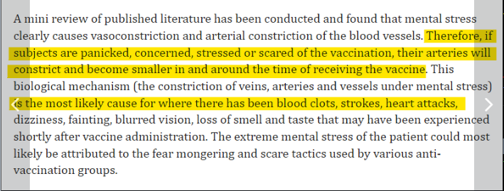 "Strokes from the vaccine are caused by the stress of ... err ... having the vaccine"