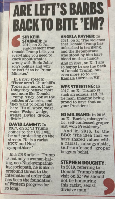 Meanwhile the US has not yet endorsed Starmer's pick for UK ambassador to the US for some reason. Labour (socialist) grandee Peter Mandelson once called Trump 'a fascist'.
