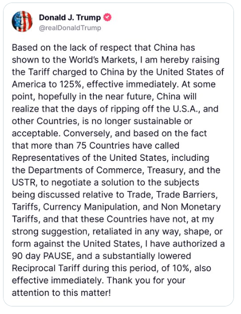 1177JUST IN - China raises tariffs on U.S. imports to 125%.