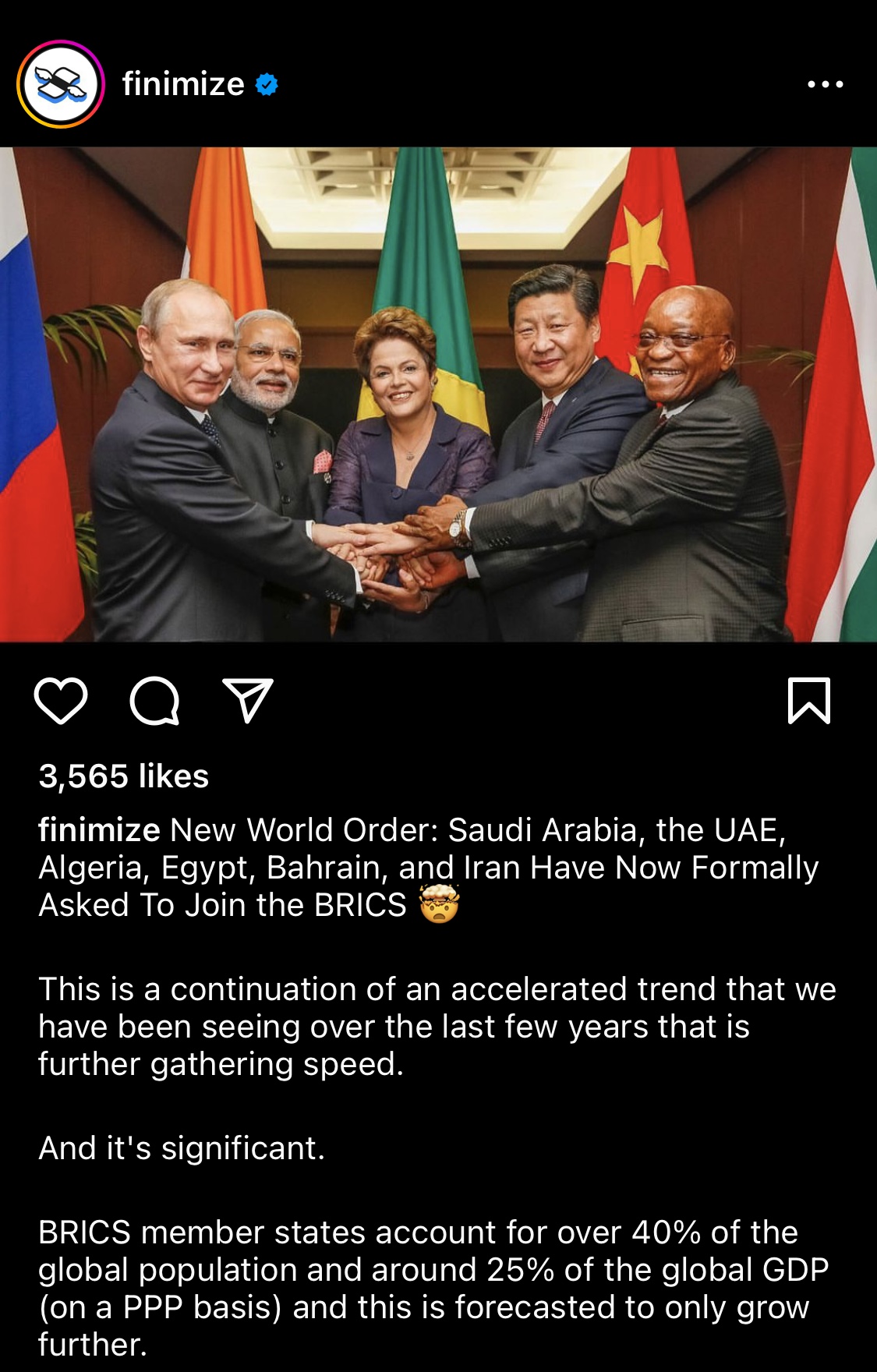 That includes also one major goal: The USD has got to go and their own currency to be established,