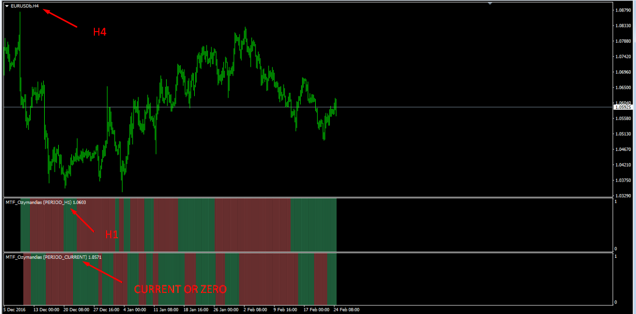 but it have problem with higher time frames and it not work true when you choose chart time frame higher than indicator set time frame. if you copy two indicators in mt4 indicator folder and run mtf-ozy-histo.mq4 file it load ozymandias_v2.mq4 in mtf mode.