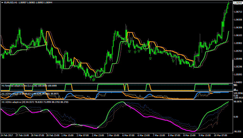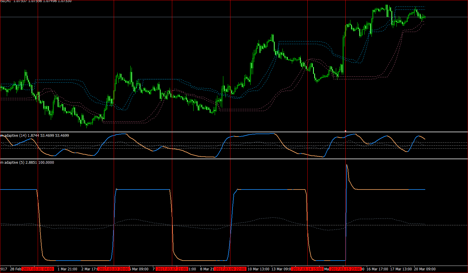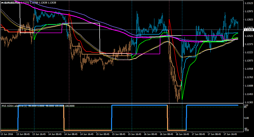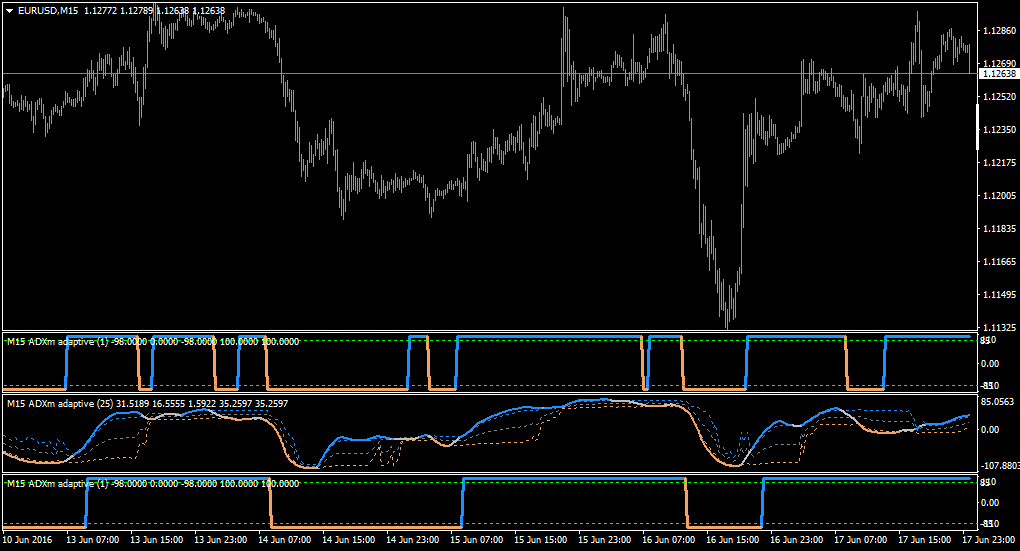 Here is one more version of Adaptive ADXm (with different coloring options-in order to make it easier to see when is there valued trend and when it is ranging.
