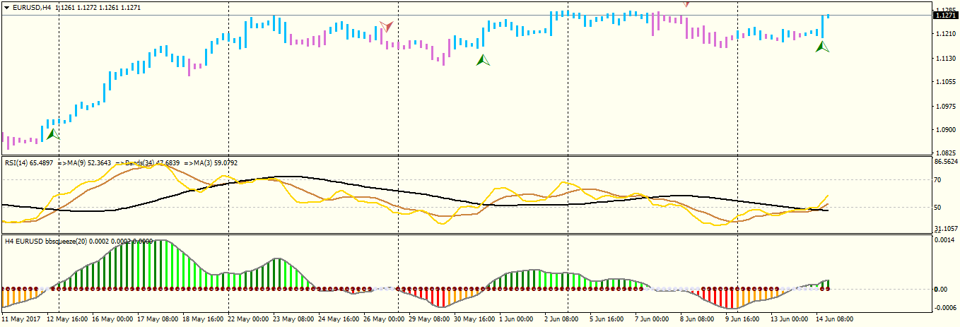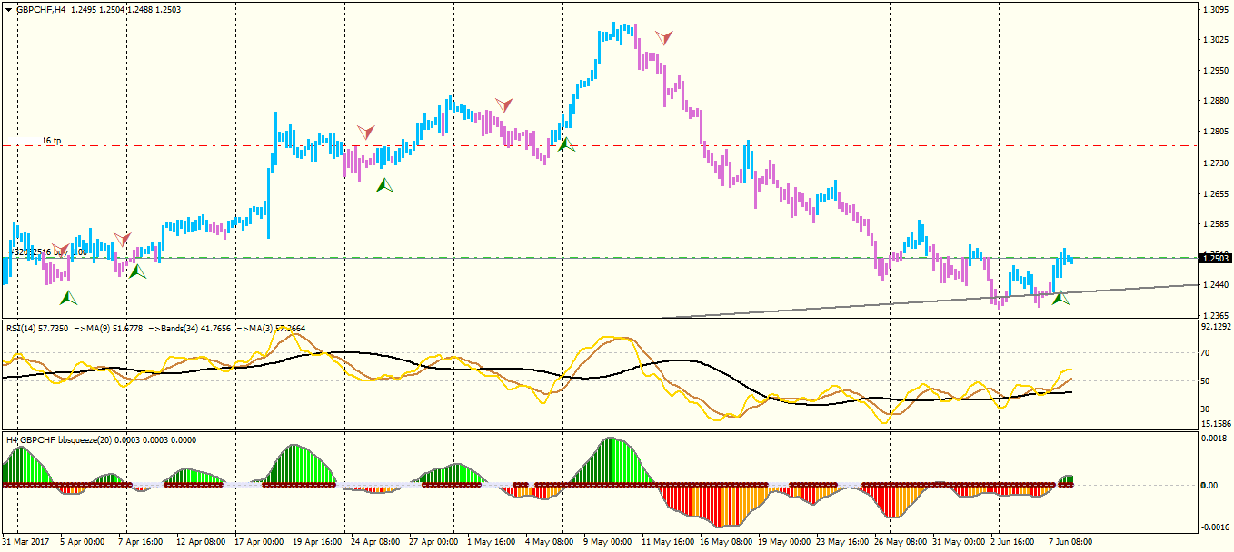 combination of daily trend line and squeeze system at H4
