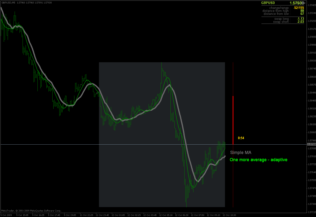 The idea of this one is simple : it should not be itself, but it should be a kind of a chameleon - it should "imitate" as much other moving averages as it can. So the need for zillion different moving averages would diminish. And it should have some extra, of course :