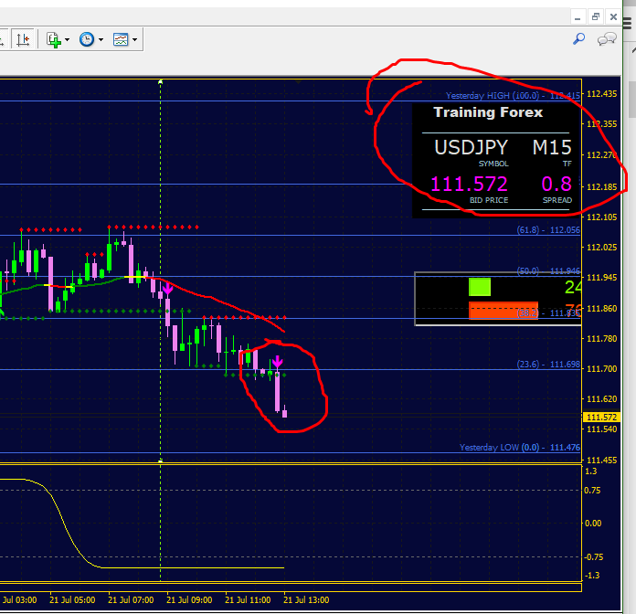 Your price and spread, you will see that there are 3 colors red,green and silver..silver is when the market is equal.