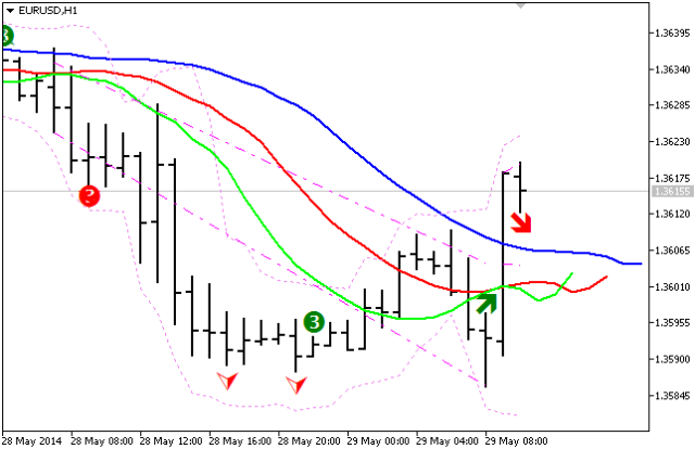 Bullish/Bearish Fractals (3rd Wise Man) that are above/below the Teethline (trend);