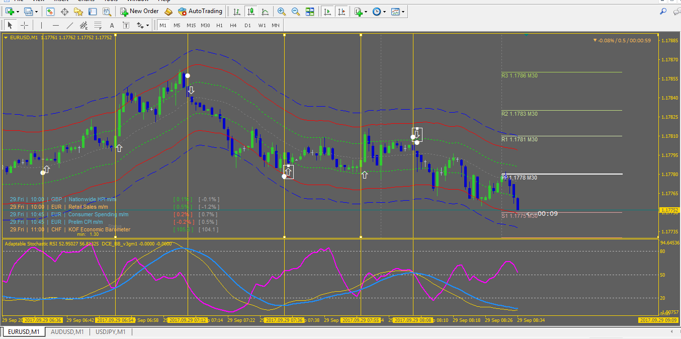 would it be able to post your settings of DCE_BB_v3gm.mq4 indi? In your pictures must be modified values.