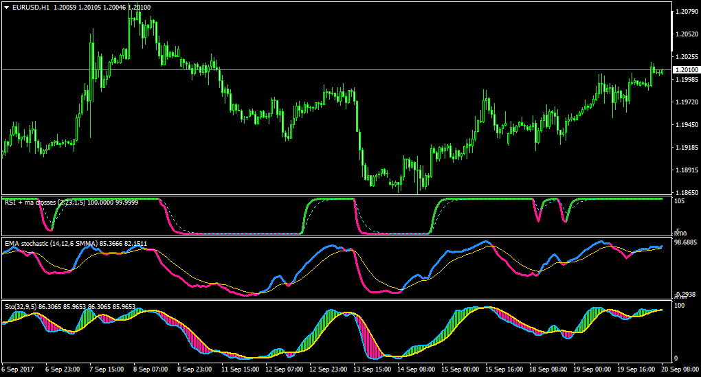 Signal has the usual Average types available too,Coloring and alerts are based on the stochastic to signal crosses (the "classical way of using stochastic") but even with these settings,there is a lot of room for experimenting