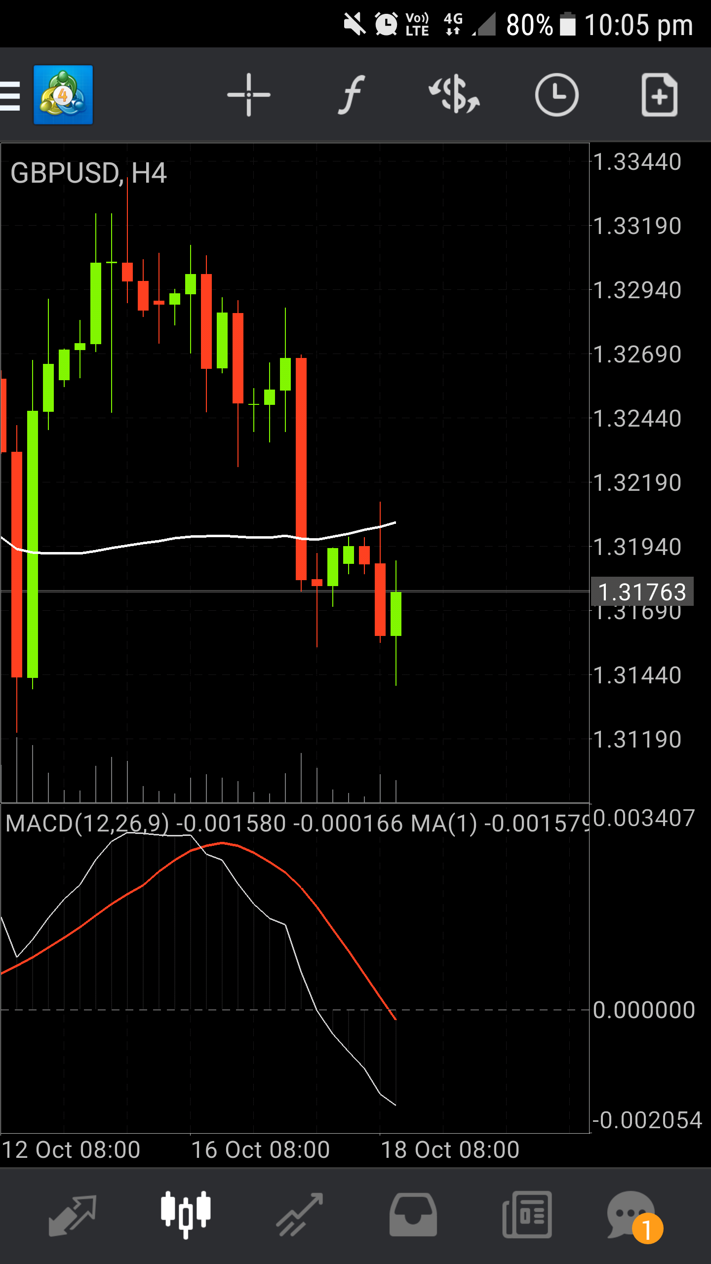 Follow these instructions to add the "two-line" MACD custom indicator your mobile MT4 Android or Apple iOS.