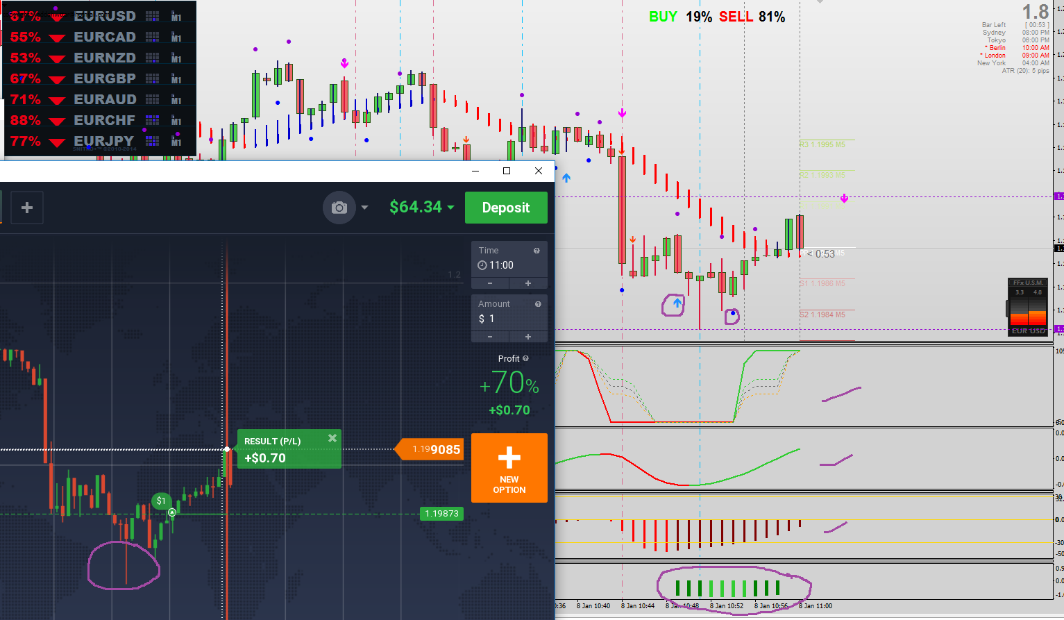 For signaling : FX Sniper's Ergodic CCI Trigger simple - Arrow on 5 minute TF and Dot on 1 minute timeframe. Trade on Dot