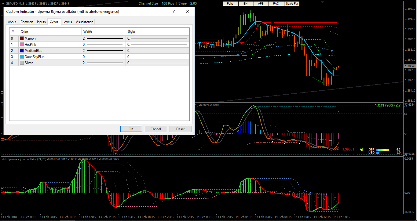 386mrtools wrote: Wed Feb 14, 2018 5:01 am This is double dynamic zone of the dpwma - jma oscillator(kind of macd) with separate price options for both the dpwma and the jma. Also can choose between colored lines or the histogram with colored lines. For the dynamic zones if you prefer to not use just set the buy/sell probabilities to 0.