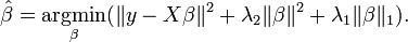 ElasticNet is hybrid of Lasso and Ridge Regression techniques. It is trained with L1 and L2 prior as regularizer. Elastic-net is useful when there are multiple features which are correlated. Lasso is likely to pick one of these at random, while elastic-net is likely to pick both.