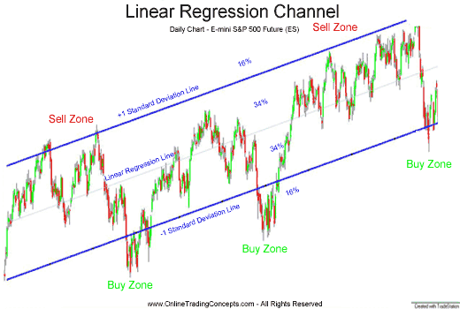 Linear Regression Channels are quite useful technical analysis charting tools. In addition to identifying trends and trend direction, the use of standard deviation gives traders ideas as to when prices are becoming overbought or oversold relative to the long term trend.