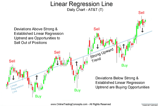 The Linear Regression Line is mainly used to determine trend direction. A chart of AT&T (T) stock is given below :